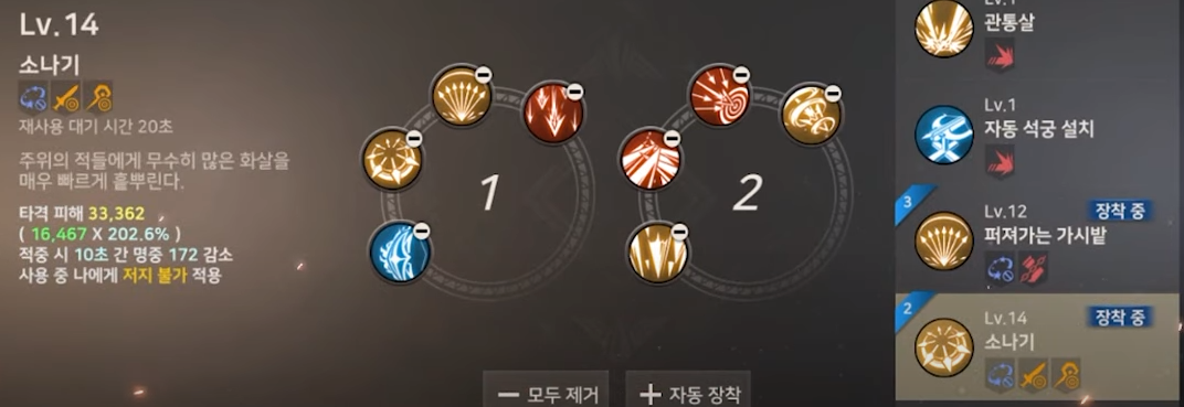 이 정도 스킬 트리를 가져가시면 무난하게 궁수를 키우실 수 있을 겁니다.
