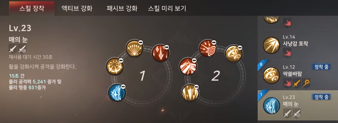 매의 눈만 다 찍으신 다음에 본인의 주력 스킬을 찍어주시면 됩니다.