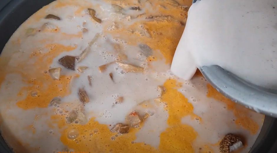 그리고 걸러놨던 들깨가루 물도 부어주세요.